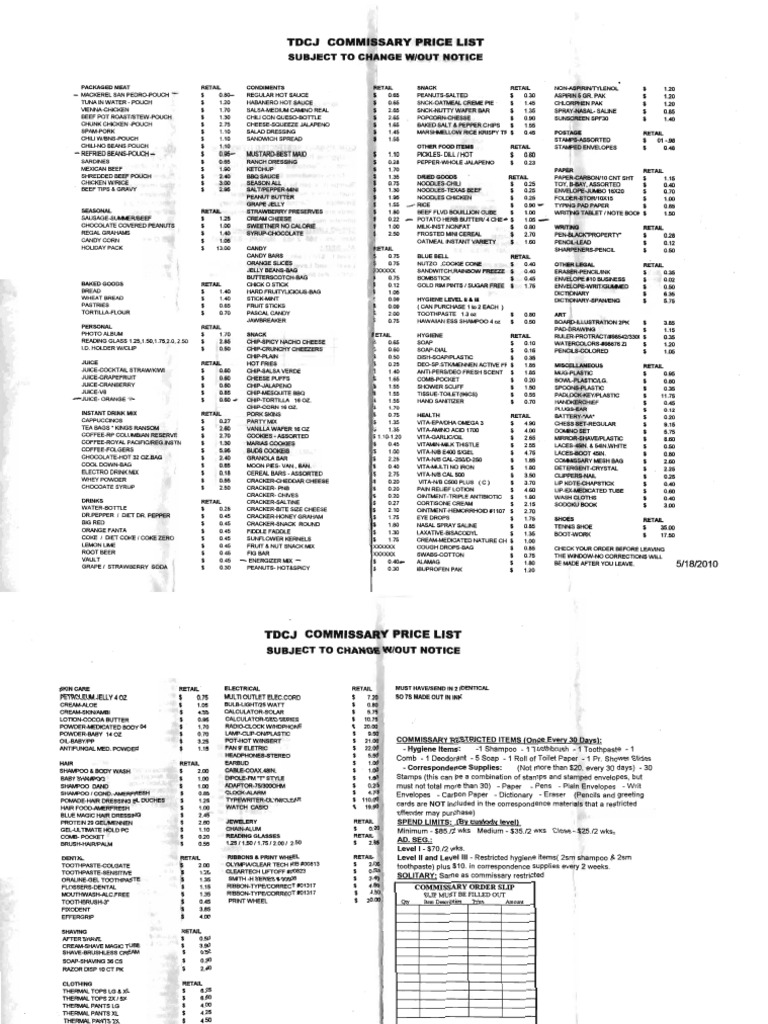 Tdcj Commissary List / You must have your id card with you to buy your items.